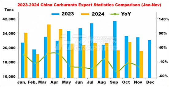 The demand for carburant exports from China decreased in 2024, and due to poor market conditions, prices were under pressure from downstream sectors, leading to a dominant downward price trend and a significant reduction in total export value.