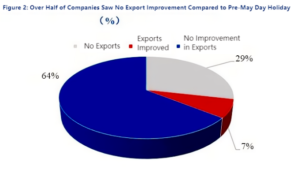 According to the latest survey of 56 sheet producers, although overseas inquiries increased after the easing of U.S.-China tariff tensions and foreign buyer sentiment improved, more than half of the surveyed companies reported no significant improvement in export orders. Among those seeing improvement, only one company's export orders returned to pre-May Day holiday levels.