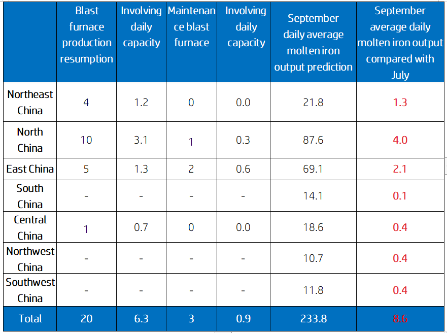 Mysteel studies: Shutdown and resumption of blast furnace production in August and plan for September