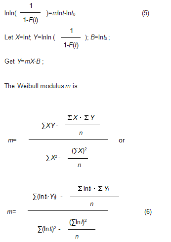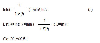 In order to facilitate the calculation of the shape parameter m value, the Weibull model is deformed, that is,
